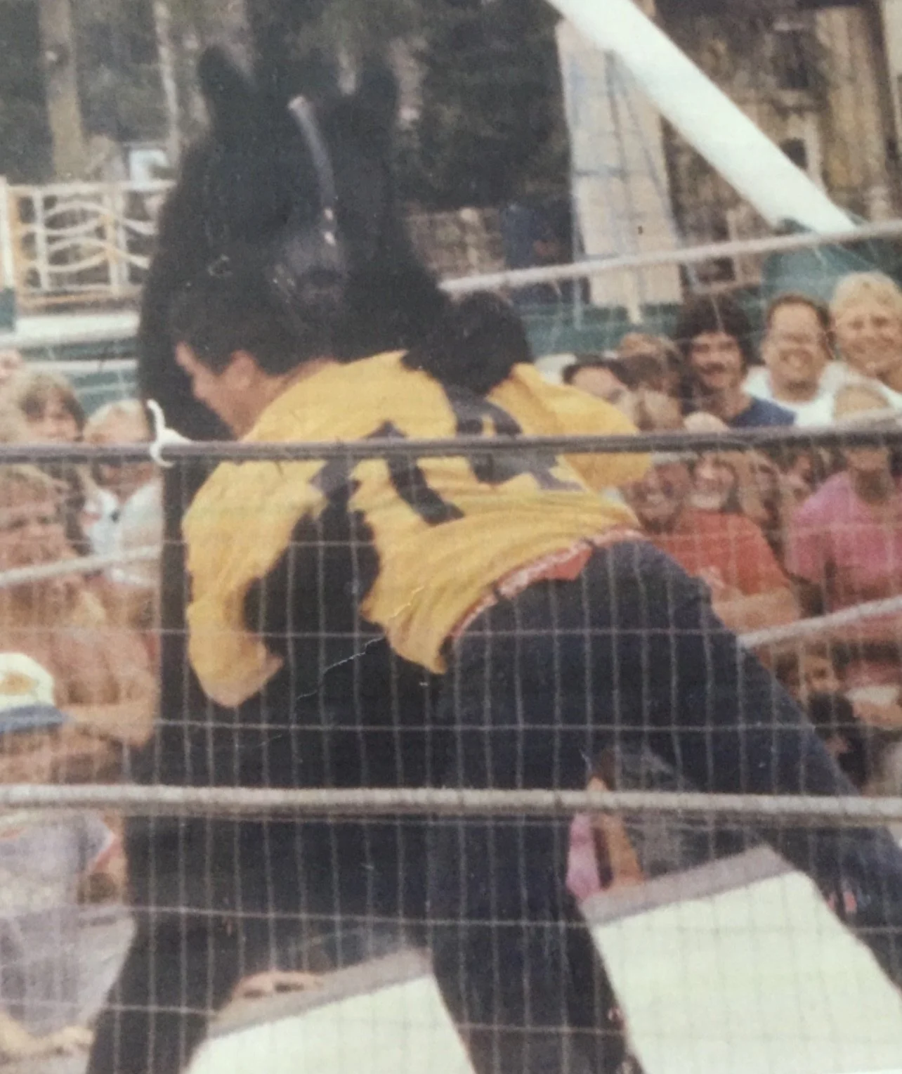 Joined the Circus at 16 after running away, This is me wrestling a bear in the circus.