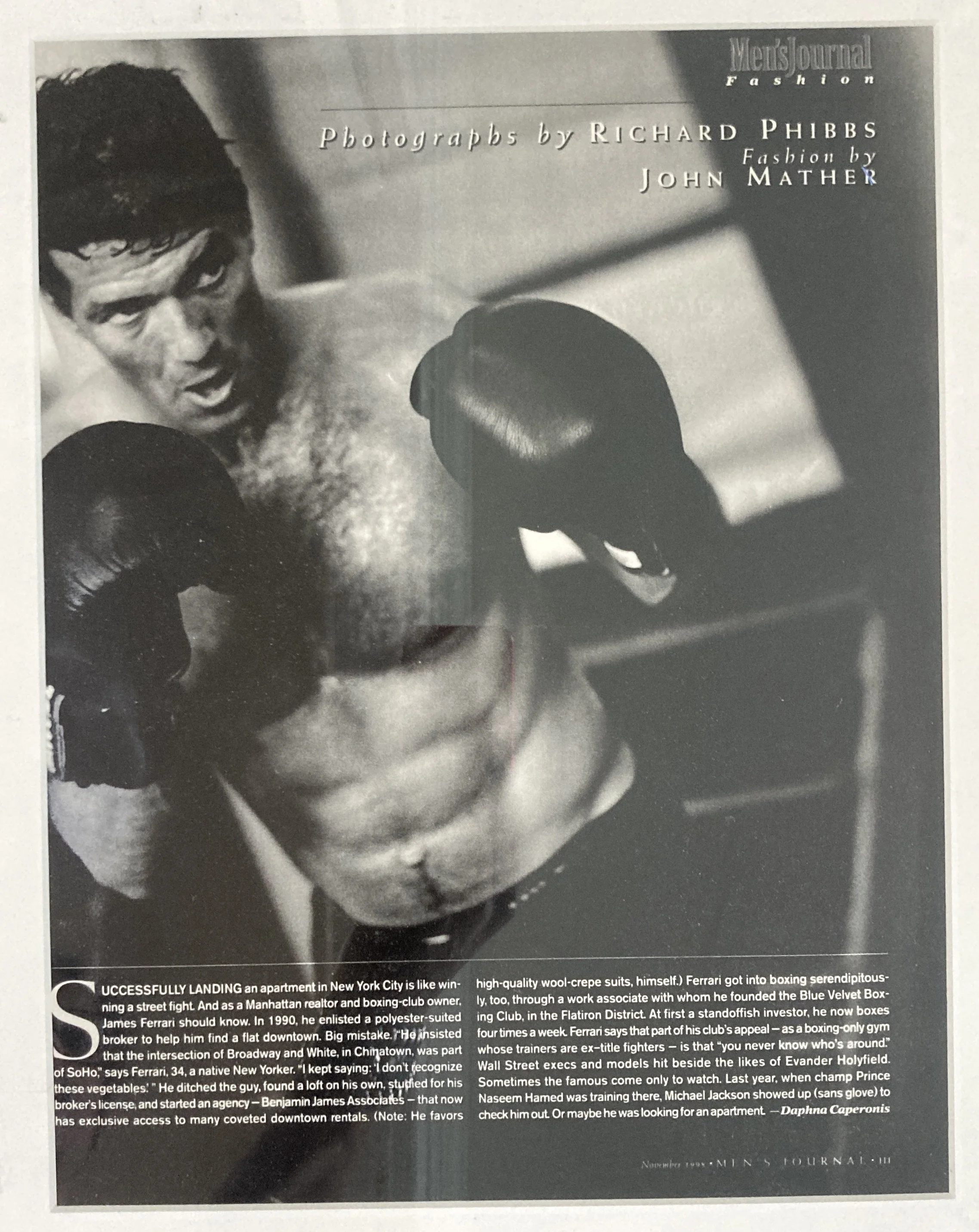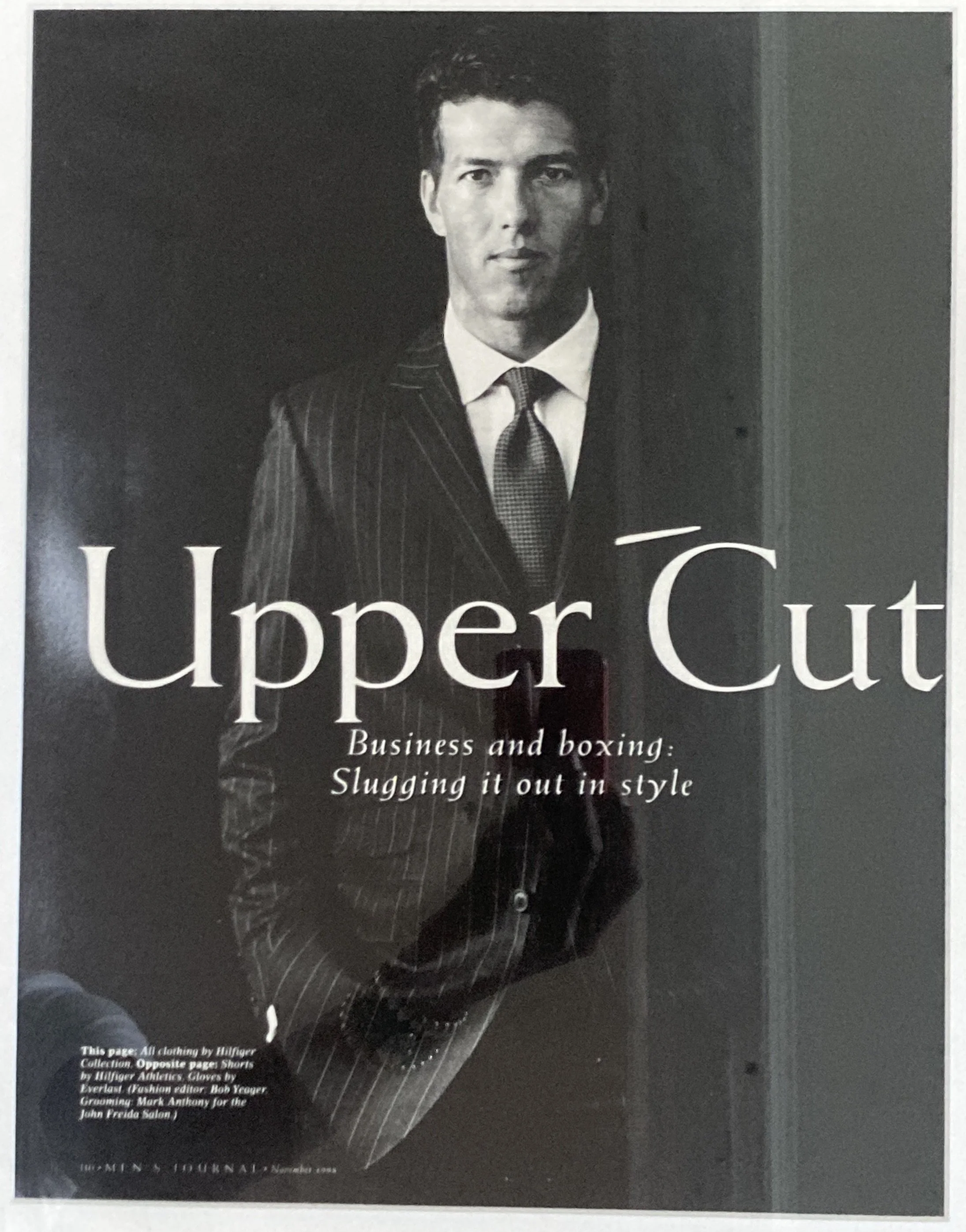 Two page spread in Men’s Journal about my businesses Blue Velvet Boxing Gym and Benjamin James Real Estate.