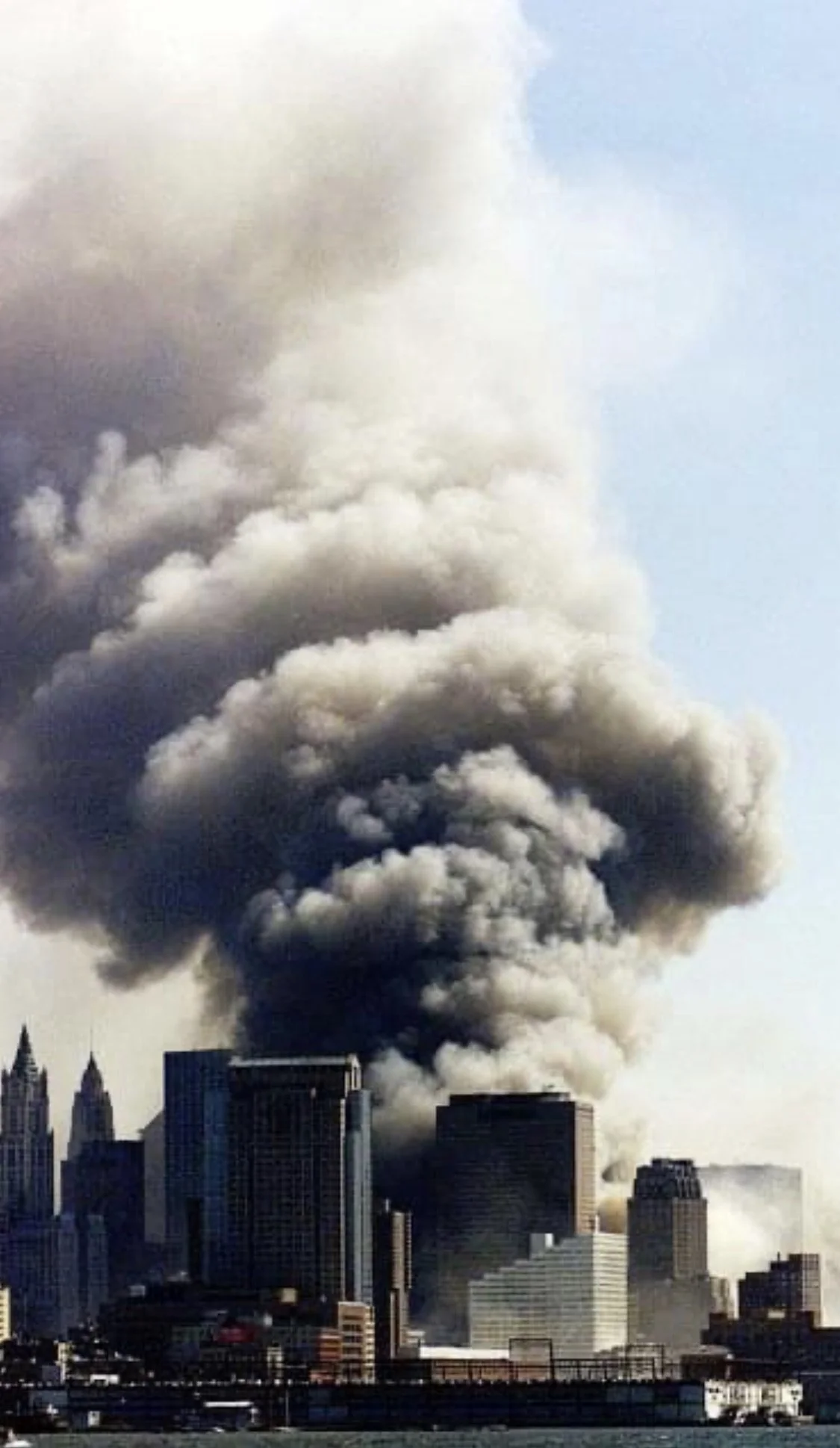 Photo of smoke coming from the Twin Towers taken by me from 14th St. 9/11/01